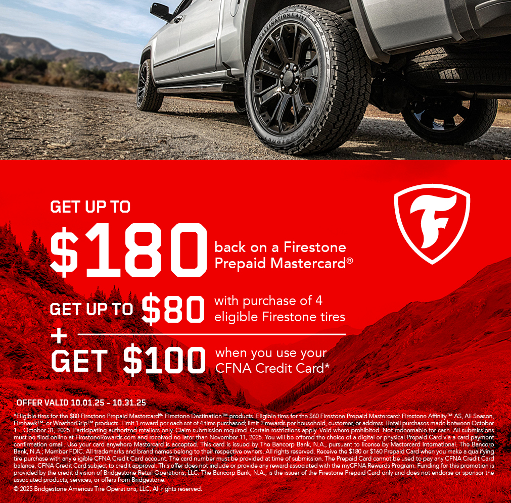 Firestone Affinity AS™, Destination™, or WeatherGrip™ tires